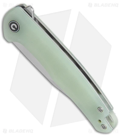 - Natural jade G-10 handle scales on steel liners.
